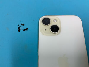 背面のカメラレンズガラスが割れてしまうとその衝撃でカメラ自体が壊れてしまったり、割れた隙間から破片や細かいチリ等が内部のカメラに付着して異物が映ってしまう事があります…