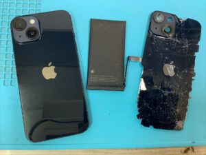 バッテリーが劣化すると膨張してしまい、画面やバックパネルが浮いて割れてしまったり内部が壊れてしまう危険があります…